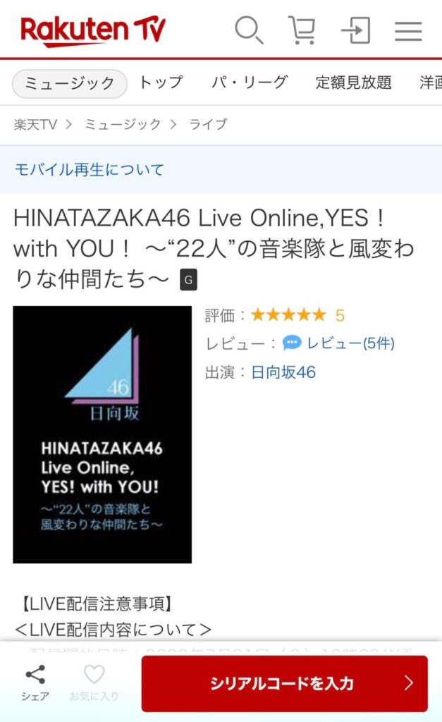 チケット 3,650円 - 7/31『HINATAZAKA46 Live Online,YES! with YOU!』
