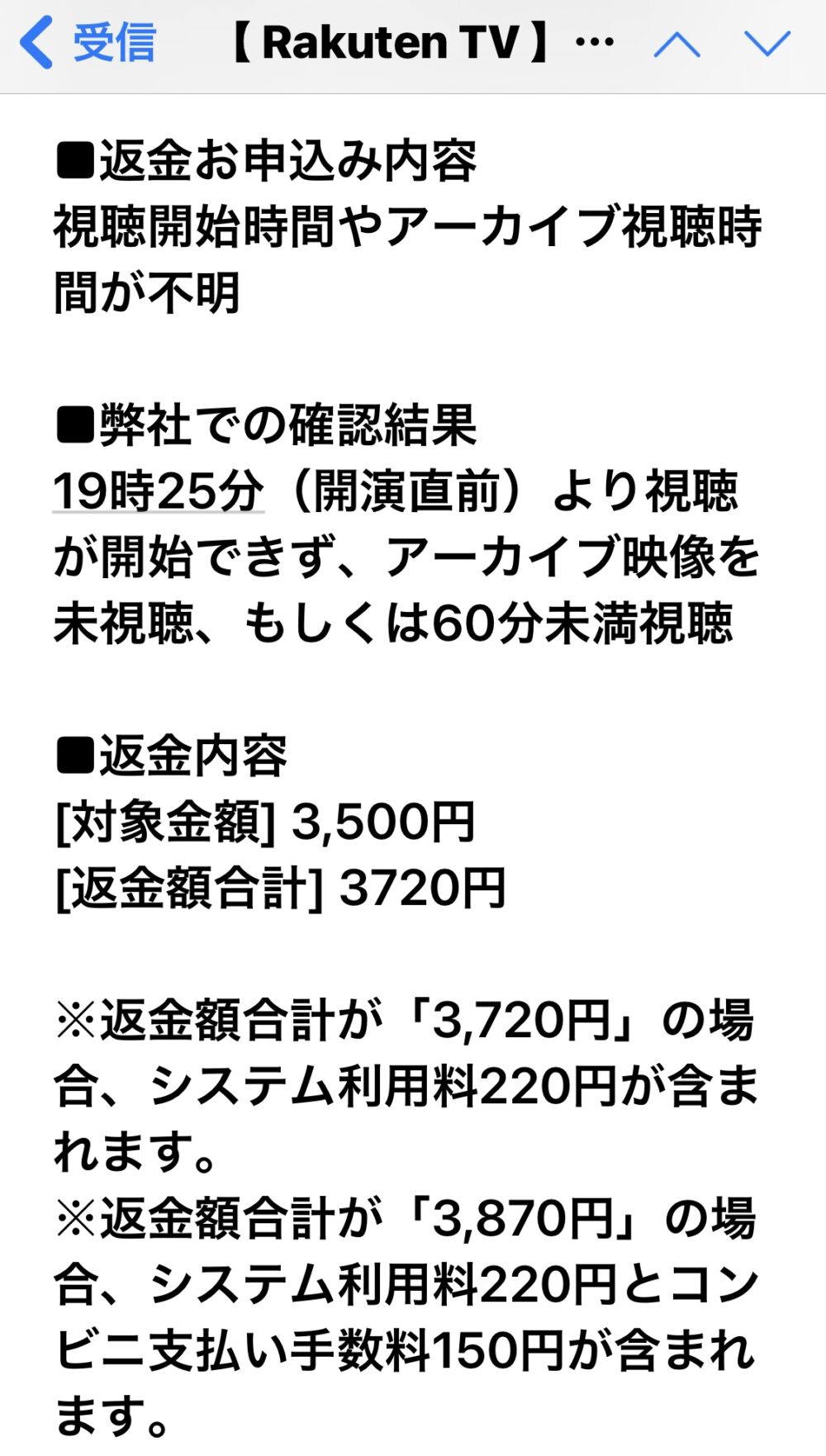 見逃し配信してくれたし、返金はなくてもいいやと思っていたのですが、