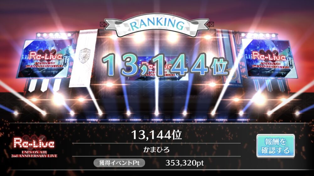 実際に何度かプレイしてみた感じだと、トータルの獲得数は通常ライブの1.5倍くらいです。
