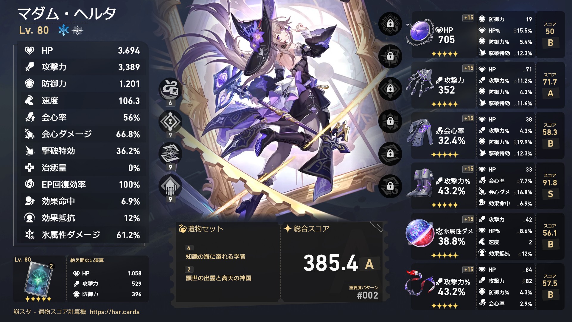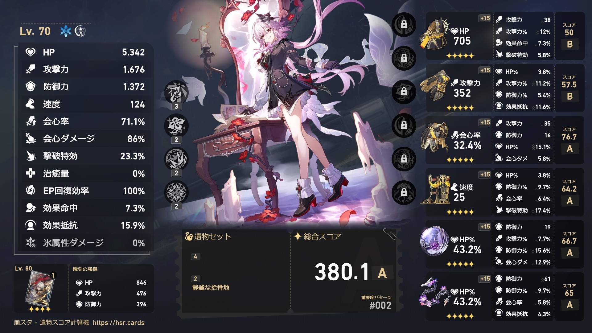 崩スタ-遺物スコア計算機 https://v2.jabrek.net/hsr/