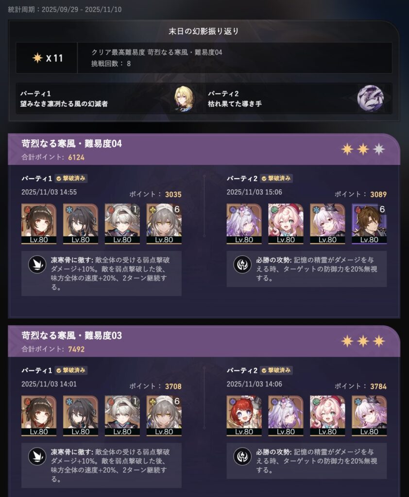 崩壊:スターレイルでの周期コンテンツ「末日の幻影」の挑戦記録をまとめました⚔️