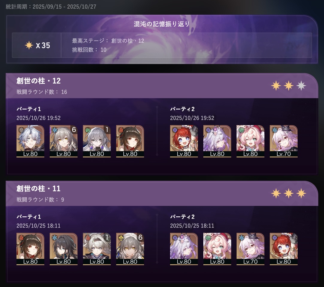 崩壊:スターレイルでの周期コンテンツ「忘却の庭」の挑戦記録をまとめました⚔️