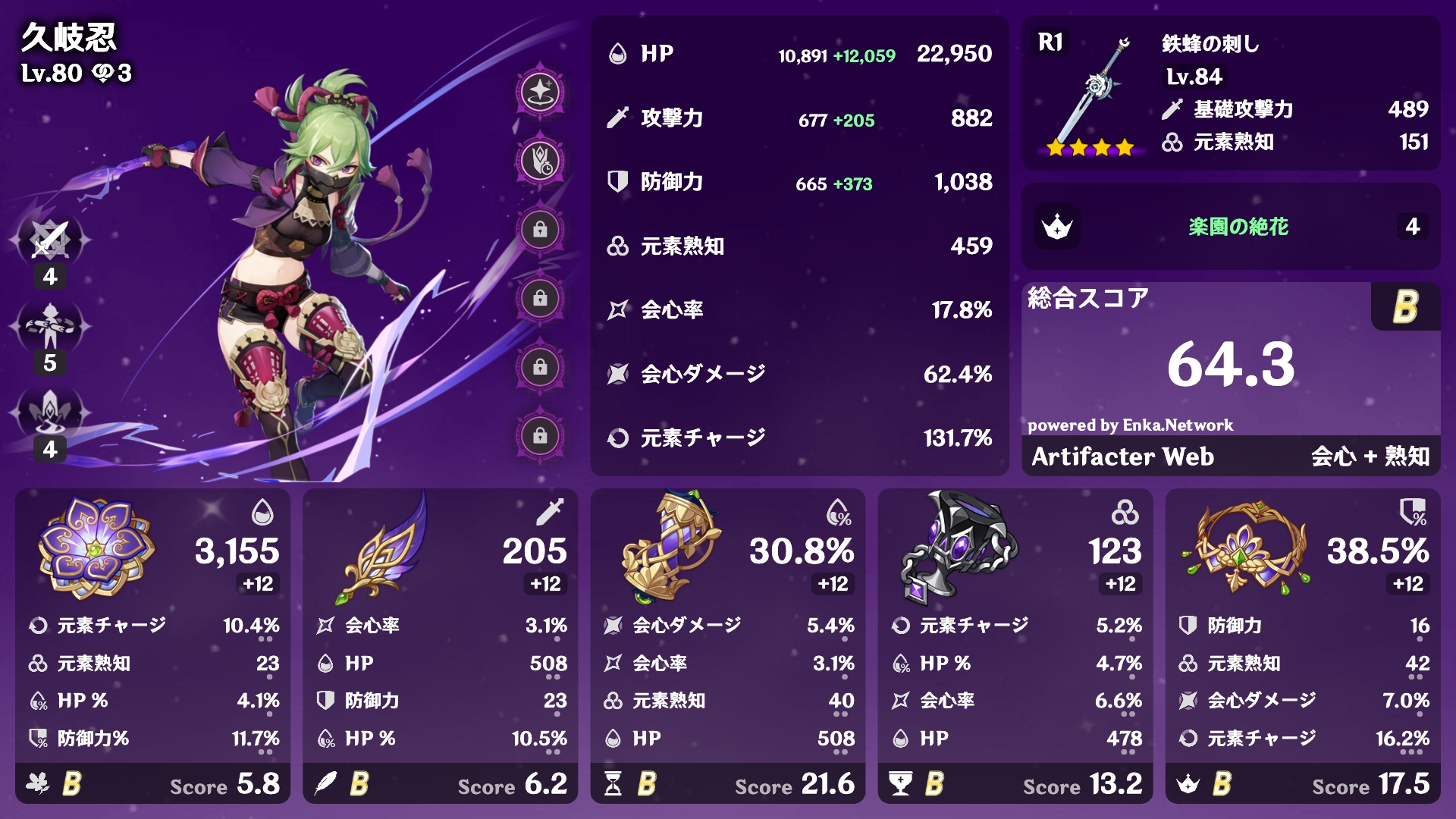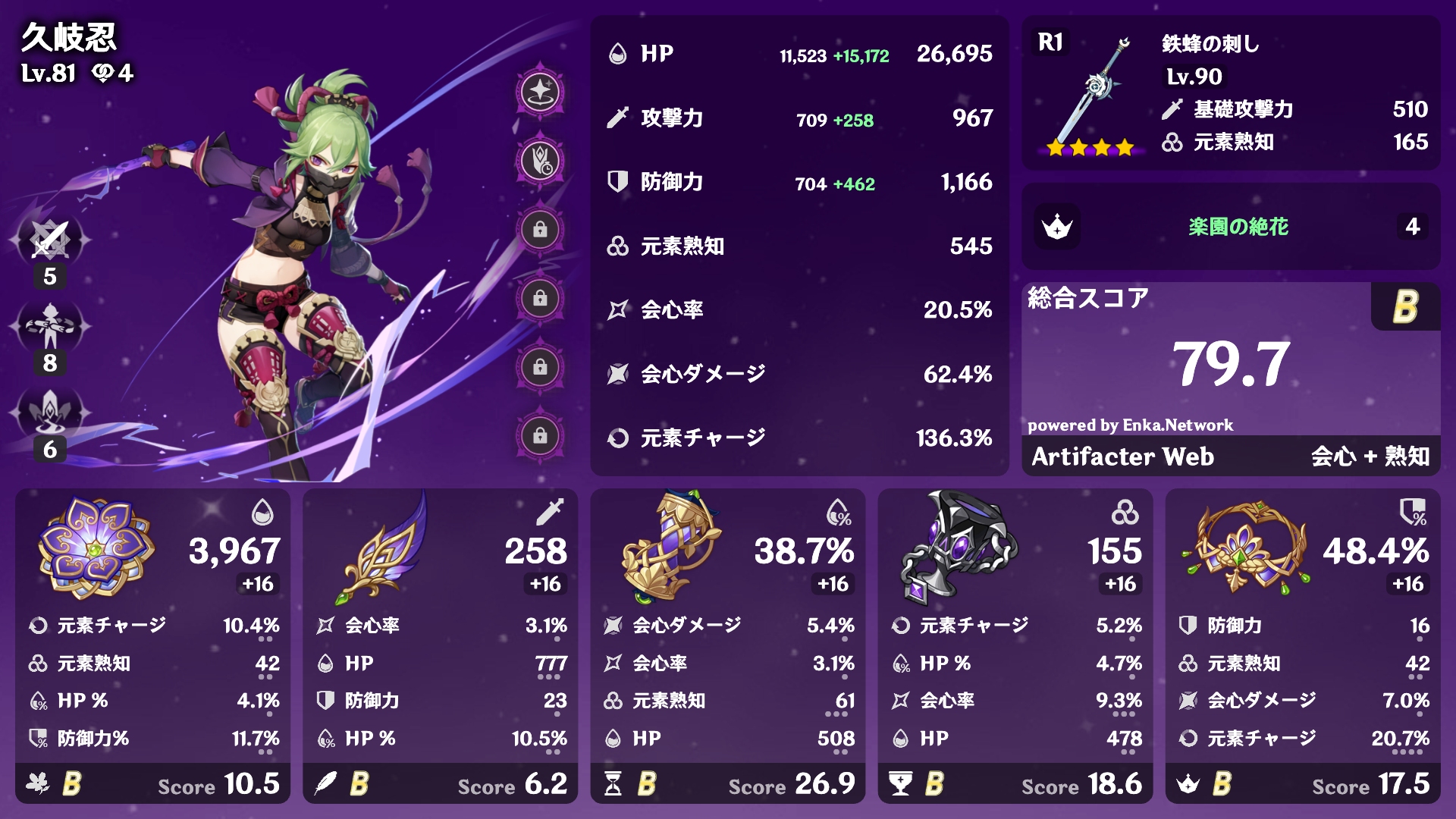 YouTube - 久岐忍育成③ «強化編» Lv.80の突破・聖遺物のメイン厳選・天賦の強化⚡️