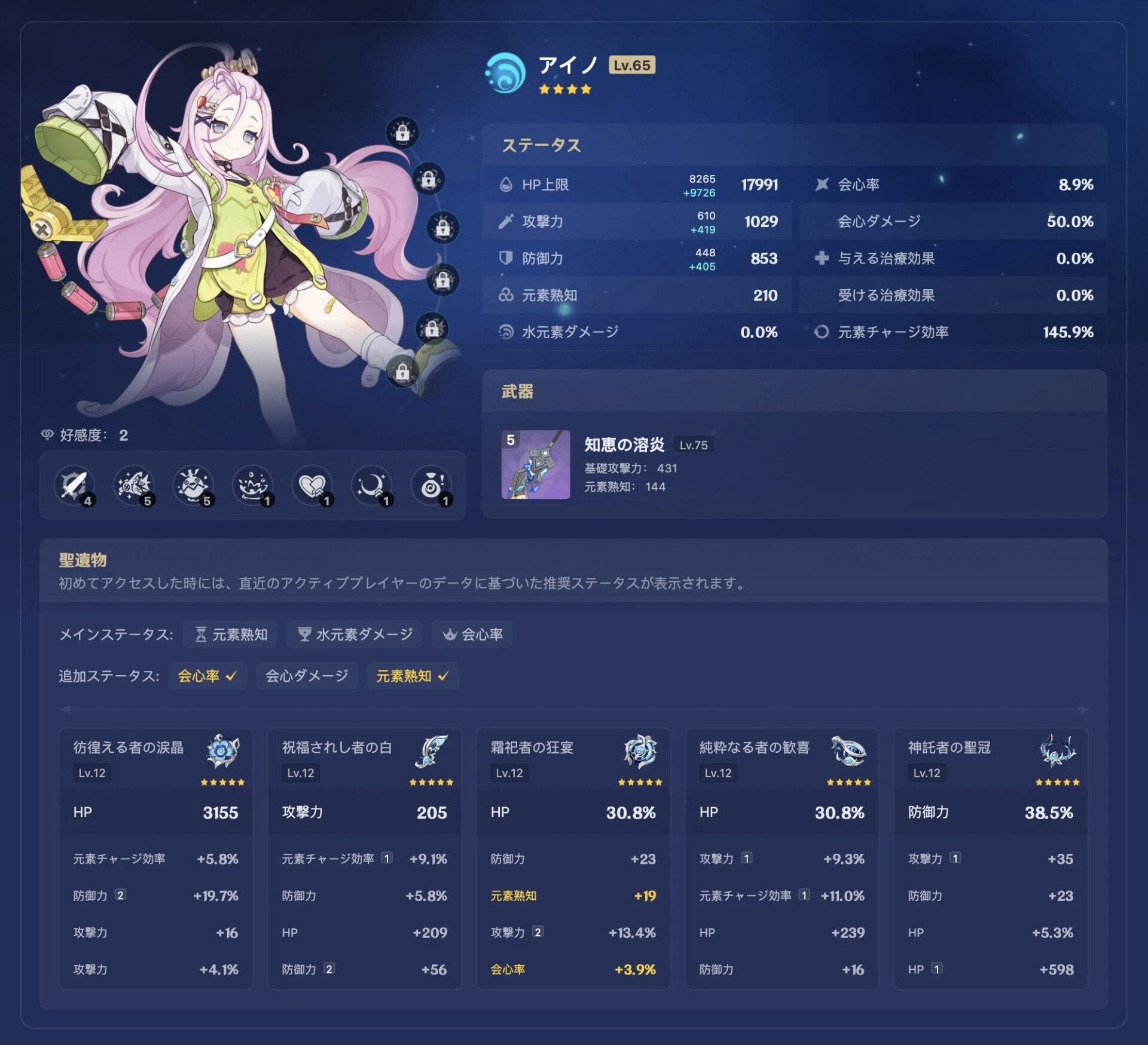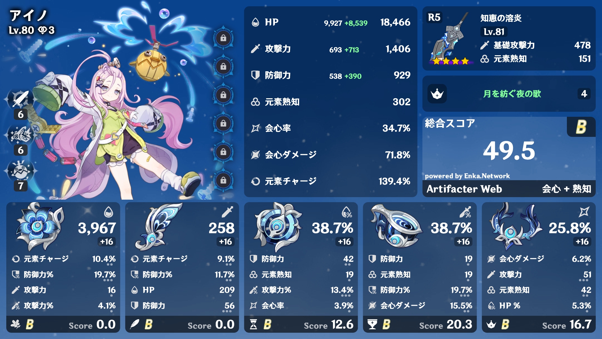 • アイノ育成② «強化編» Lv70の突破・武器の強化・聖遺物のメイン厳選🔧
