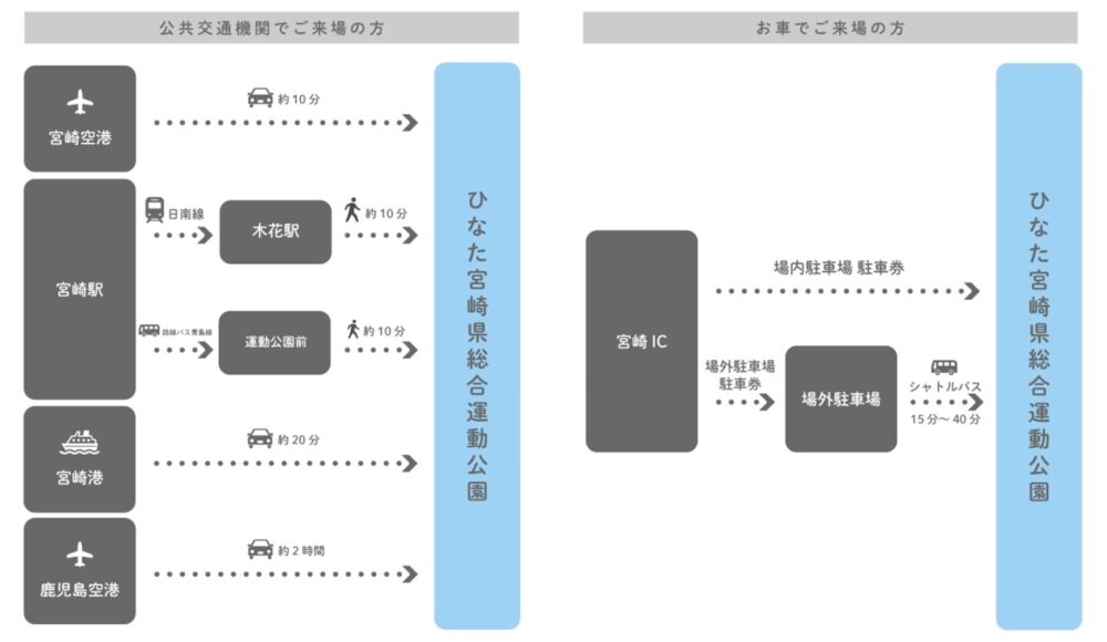 ※宮崎港→宮崎駅のみ送迎あり