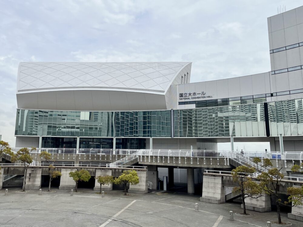 中央のガラス張りの建屋が「パシフィコ横浜 国立大ホール」