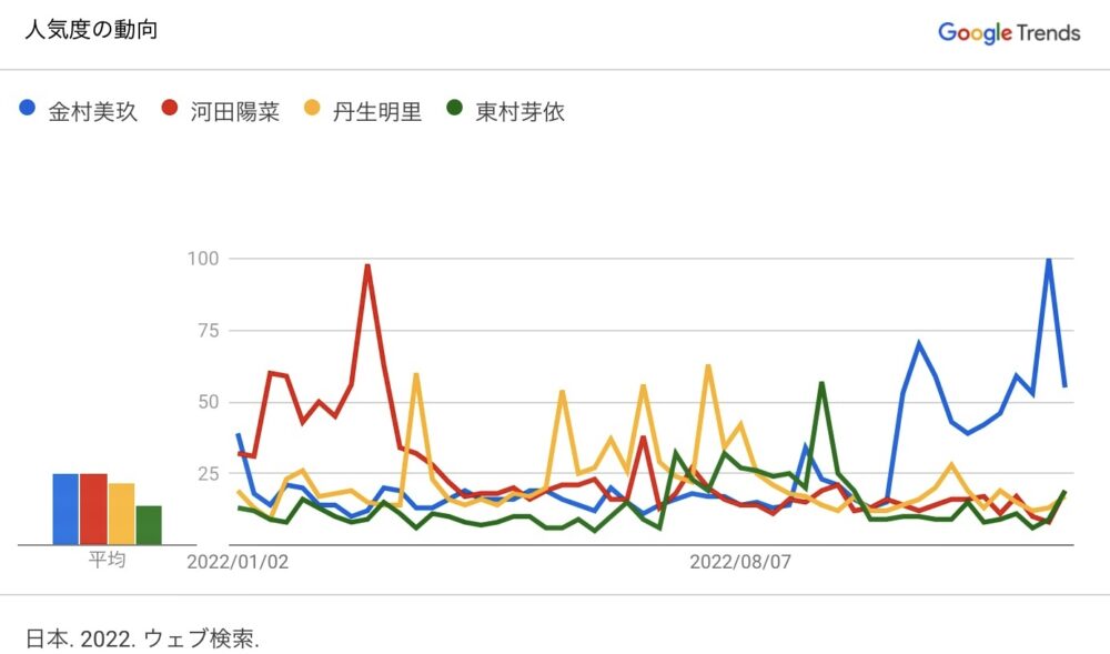 2022年の1年間に「どれくらいネット検索されているか?」のデータ。