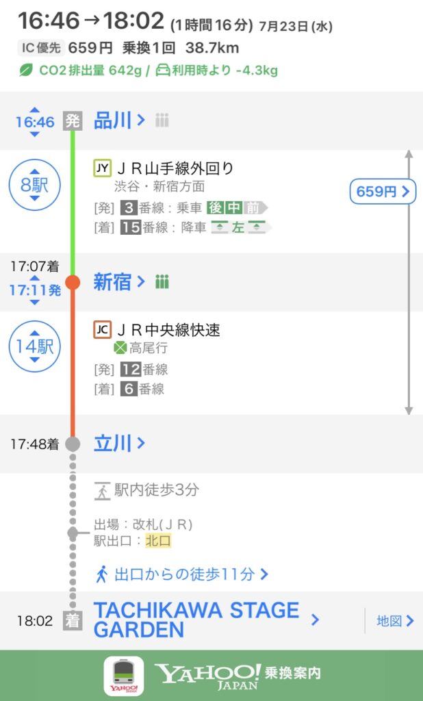 東京の混雑状況がよく分からないので、なるべく乗り換えが少ない方が安心かなと😄
